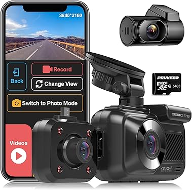 The PRUVEEO Dash Cam is a versatile dual-camera system with 1080P front and rear coverage. Night vision and WDR ensure visibility in tough lighting, while its rotatable lens offers flexible mounting. The included 64GB card provides ample space, and loop recording plus G-sensor auto-lock protect key footage. With parking monitor and motion detection, it keeps watch even when your car is off. A great pick for drivers seeking full-time surveillance with excellent value.